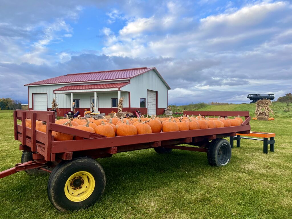 Our Pumpkin Cannon was introduced to the farm during our 2014 season! Believed to be Wisconsin’s Largest Pumpkin Cannon, it took 2.5 years and the support of more than a dozen family and friends to complete. Pumpkins are fired from the cannon using compressed air and the power of an old snowmobile engine.